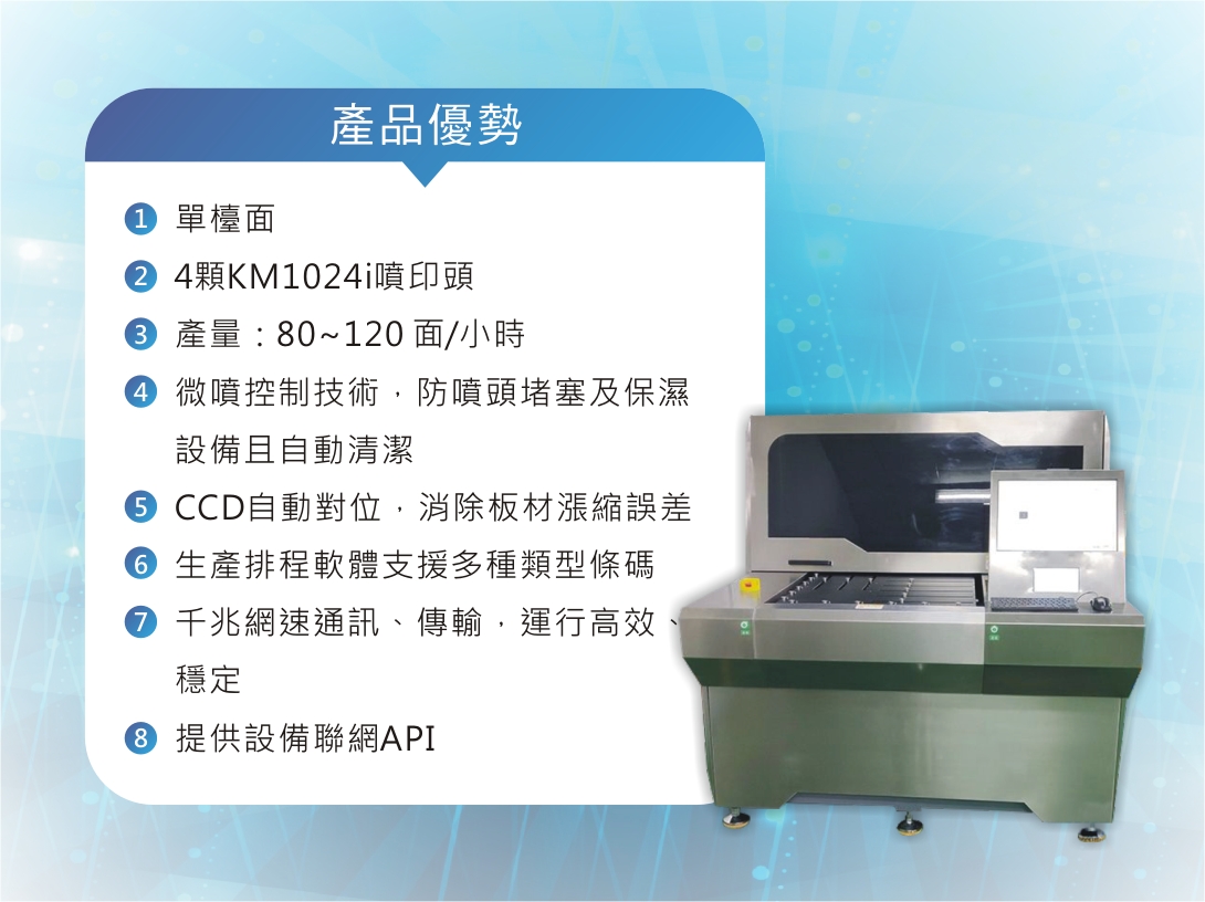 SG-9407D 半自動 首頁 產品介紹 【文字噴印】 SG-9407D 半自動 產品規格: 最小線寬:0.075mm 最小字高:0.6mm 板材尺寸:650*750mm 板材厚度:0.4~5.0mm 產品優勢